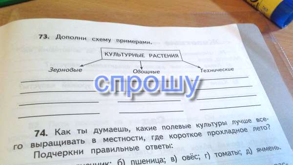 Зерновые-пшеница,ячмень.Овощные-огурец,помидор.Технические-картошка,льон.