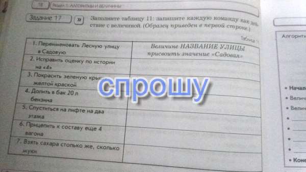 Заполните таблицу 11: запишите каждую команду как действие с величиной