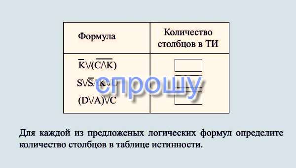 Посчитайте кол-во столбцов в таблице истинности! СРОЧНО