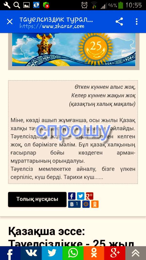 Тәуелссіздік туралы шығарма толығмен