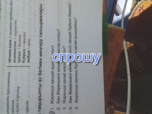 Помогите плз ,надо СРОЧНО!!!Ответьте на вопросы по тексту Жиренше мен хан.