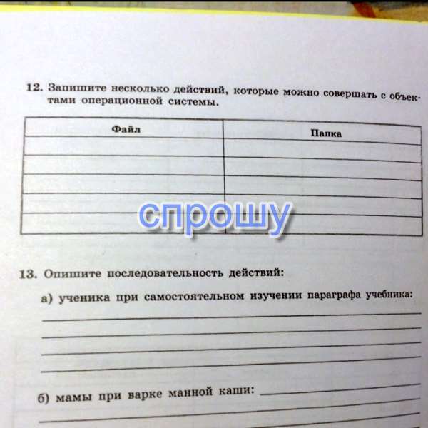 Папка:создать,удалить, переименовать, переместить,востановить.