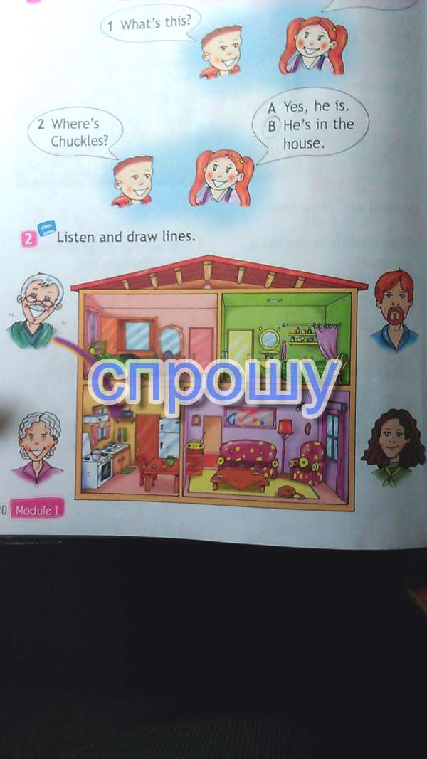 Workbook 2 класс,стр.20,#2,там дом,в нем 4 комнаты,кто в какой должен быть?