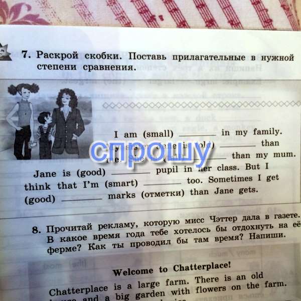 I am the smallest in my family. My sister Jane is older than me. She is taller than my mum. Jane is the best pupil in her class. But I think, that Im smarter too. Sometimes I get better marks than Jane gets.