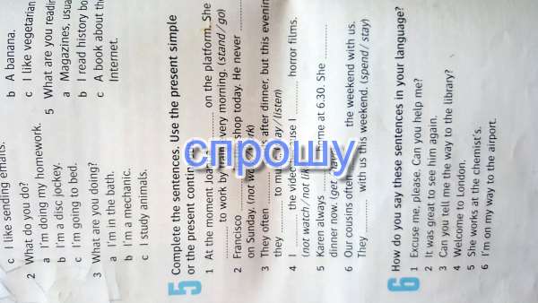 6.Our cousins often........the weekend with us. They..........with us this weekend. (spend/stay)