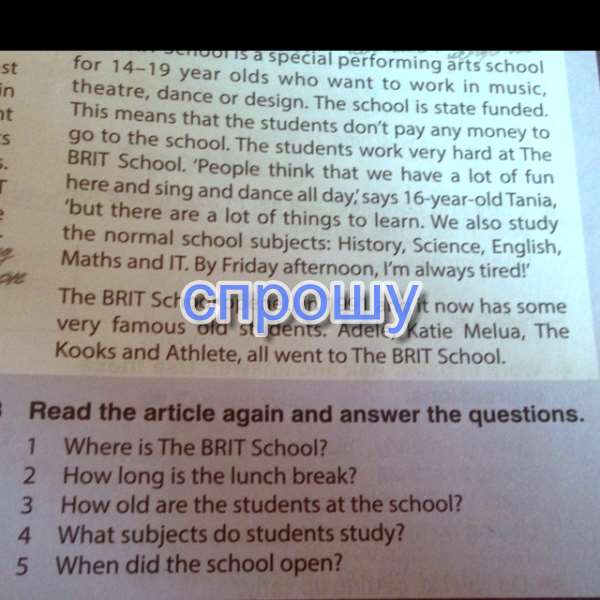 Вопросы по тексту The BRIT School