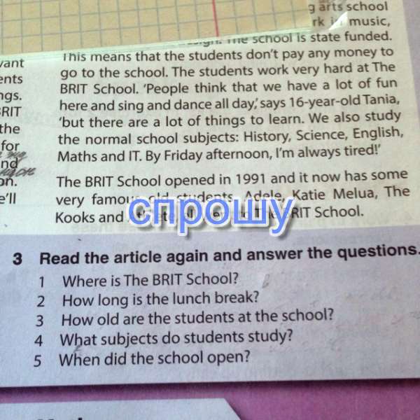 Помогите с 3 заданием. Вопросы по тексту The BRIT School