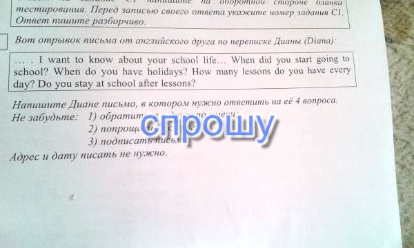 Напишите Диане письмо, в котором нужно ответить на её 4 вопроса
