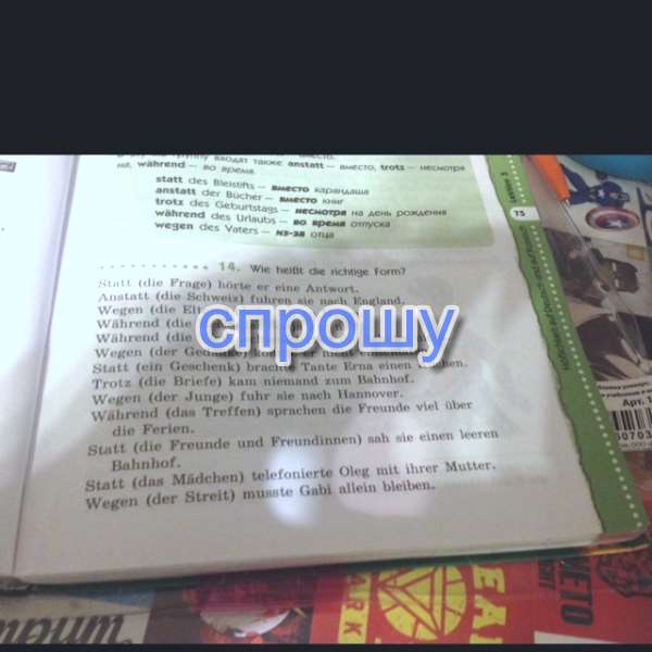 После предлогов на фото существительные ставятся в генетив, тогда: