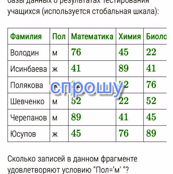 Условию пол "М" удовлетворяют 3 записи: