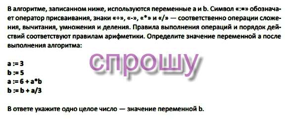 b:=b+a/3 вычисляем a/3 = 21/3 = 7, прибавляем b=5, получая 12 ⇒ b