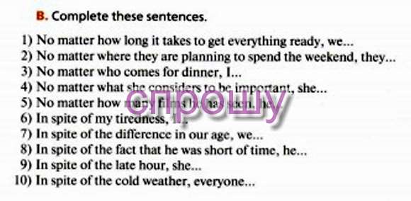 8)in spite of the fact that he was short of time, he helped me with my home assignment