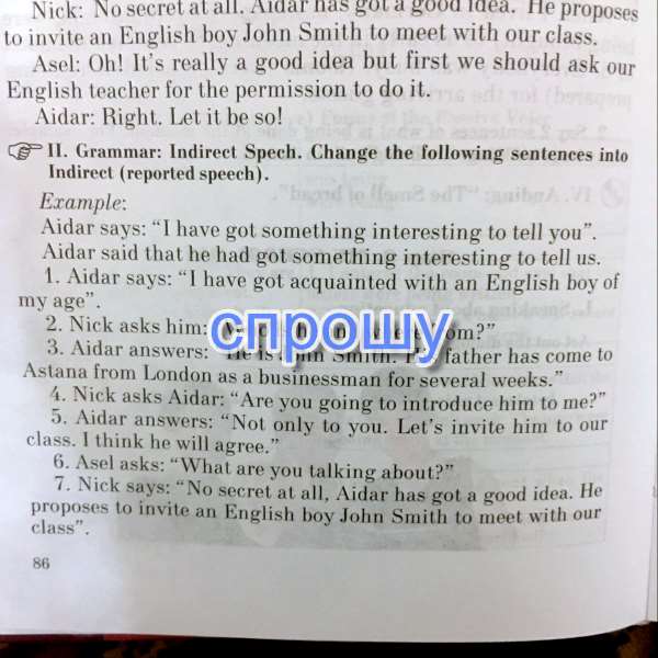 7) Nick says that there is no secret at all, Aidar has got a good idea. He proposes to invite an English boy John Smith to meet with their class.