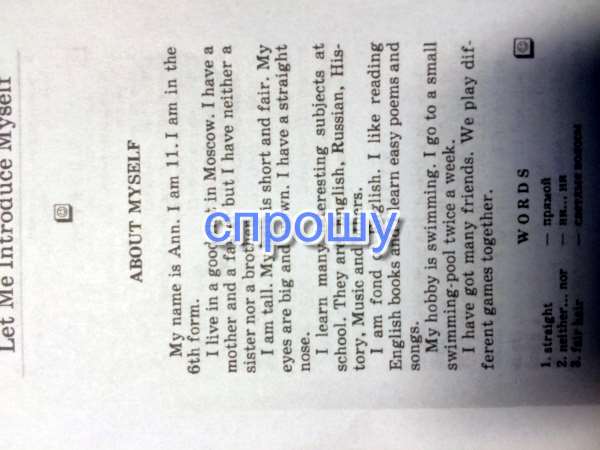 Меня зовут Аня. Мне 11. Я в 6 классе.
