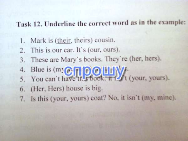 They , ours , hers , my , yours , her , your , mine , theirs , his , our , ours.