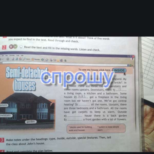 Downstairs there is. some houses have . got central heating in. outside a house there is a back garden and