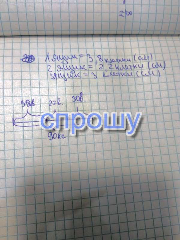 ПРИМЕЧАНИЕ: 1 ящик-3.8 клетки, 2 ящик-2.2 клетки, 3 ящик-3 клетки.Можно сантиметры.