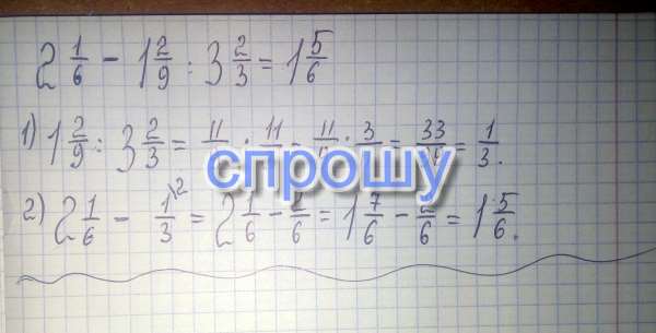 Найдите значение выражения 2 1/6 - 1 2/9 : 3 2/3