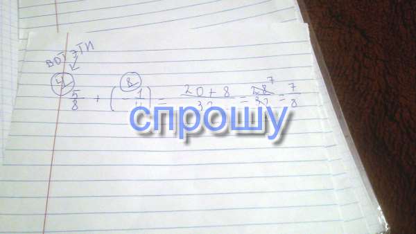 5/8+(-1/4)=5/8-1/4=5/8-(1*2)/(4*2)=5/8-2/8= 3/8