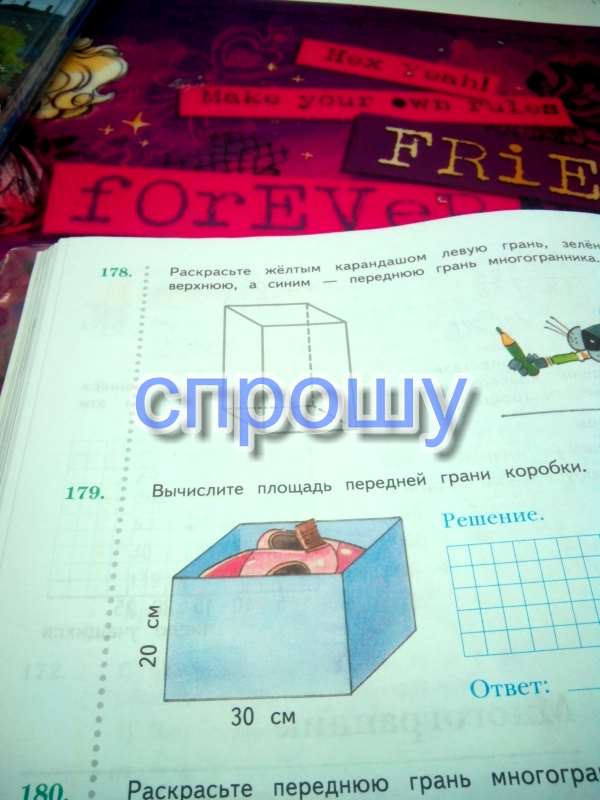 Раскрасьте жёлтым карандашом левую грань, зелёным-верхнюю а синим переднюю грань многогранника