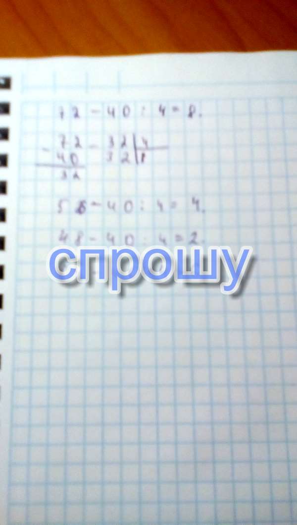 Каждое из чисел 72,56,48,64 уменьшить на 40 а результат уменьши в 4 раза