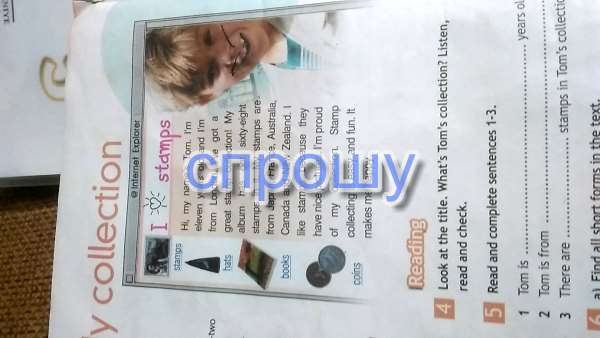 Привет, меня зовут Том. Мне 11 лет и я из Лондона. У меня есть большая коллекция марок. В моём альбоме 68 марок. Мои марки из Японии, Франции, Австралии, Канады и Новой Зеландии. Я люблю марки потому что на них красивые картинки. Я горжусь моей коллекцией. Коллекционирование марок - это просто и весело. Это делает меня счастливым.