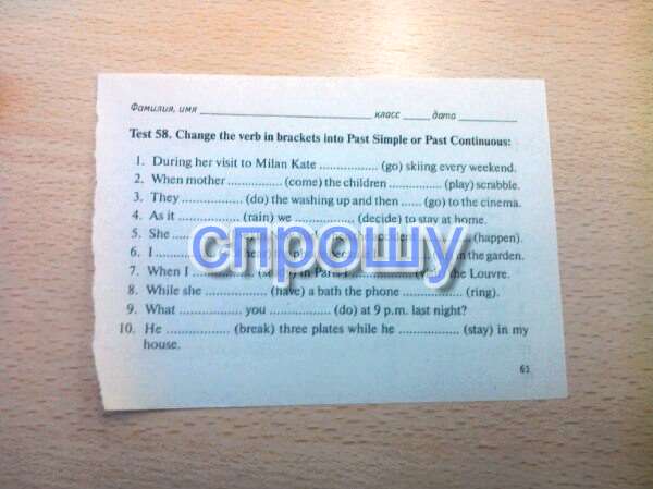 1 was going 2 came …were playing 3 did … went 4 was raining … decided 5 was living* … happened 6 didn’t hear … was sitting 7 was studying … visited 8 was having … rang 9 were you doing 10 broke … was staying