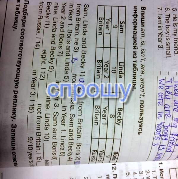 Впиши am, is, isn't,are, aren't, пользуясь информацией из таблицы, (заранее спасибо^_^).