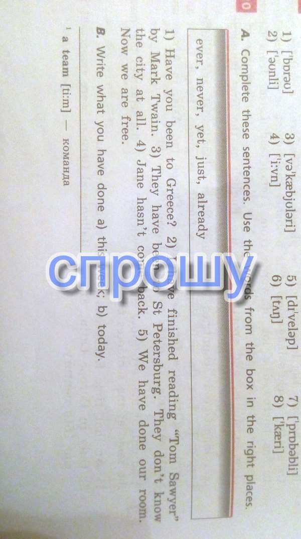 Have you ever been to Greece I have just finished reading "Ton Sawyer" by Mark Twain. They have never been to St.Petersburg. They do not know the city at all. Jan has not come back yet. We have already done our room. Now we are free.