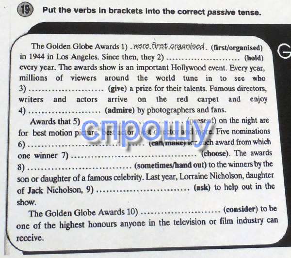 2.are held 3.will be given 4.being admired 5.are presented 6.can be made 7.is chosen 8.are sometimes handed out 9.was asked 10.is considered