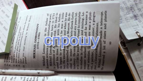 Михаил Ломоносов родился в 1711 году в городе Архангельск.Он любил проводить время рыбача с его отцом.Он начал читать когда он был маленьким мальчиком.Он хотел учится и когда ему было 19 он отправился пешком в Москву.Он принял решение поступить в Славяно-греко-латинскую академию.Он покинул Ее и спустя 6 лет он закончил своё обучение химией и психологией(философией).Ломоносов много трудился(работал) и стал успешным химиком.Михаил Ломоносов изобрёл телескоп.Он наблюдал за многими звёздами и планетами.