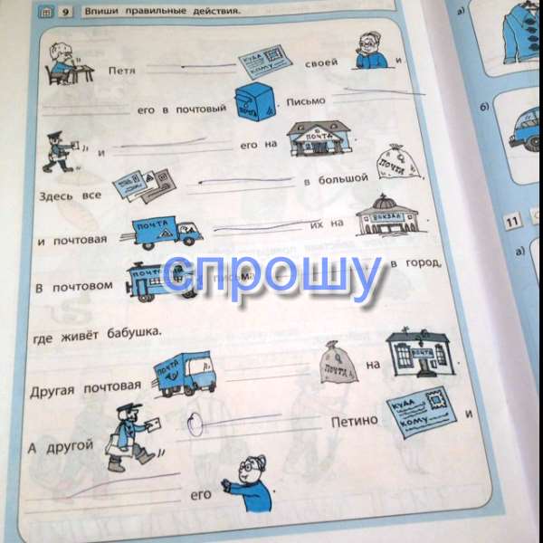 Петя отправил письмо своей бабушке и положил его в почтовый ящик. Письмо забрал почтальон и отнёс его на почту. Здесь все письма складывают в большой мешок и почтовая машина отвозит их на вокзал. В почтовом вагоне письма везут в город, где живёт бабушка.
