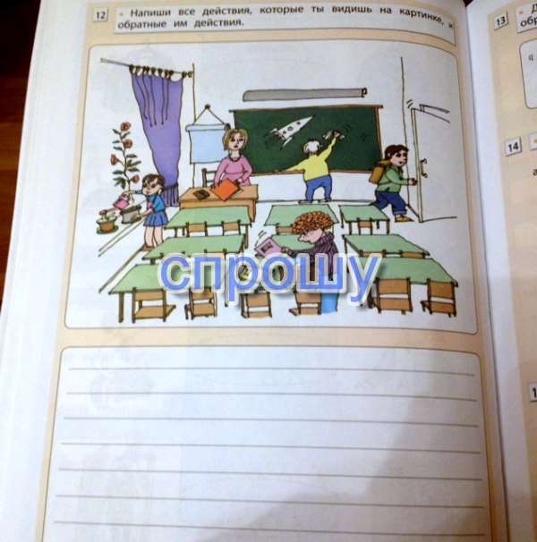 Напиши все действия, которые ты видишь на картинке, и обратные им действия.