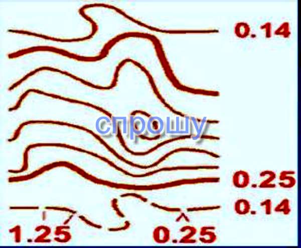 Утолщённая горизонталь-это каждая пятая линия сплошной горизонтали.Они нужны для того,чтобы быстрее оценивать разные уровни высот и быстрее воспринимать общую форму местности.