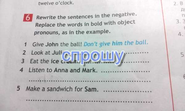 Rewrite the sentences in the negative.Replace the words in bold with object pronouns,as in the example