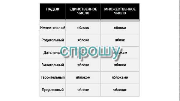 Просклонять по падежам туфелька яблоко пень