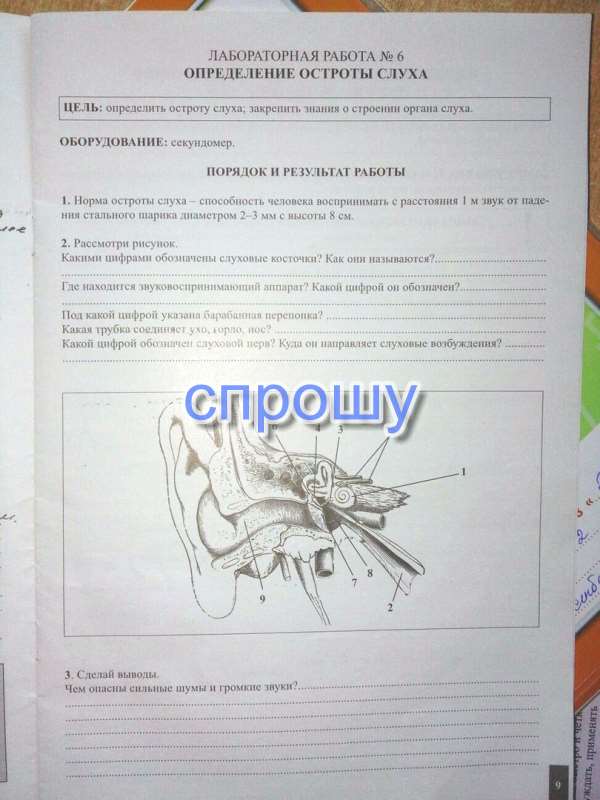 Слуховые косточки 6,4,3 - молоточек, наковальня, стремечко
