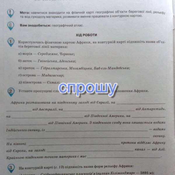 Вставитти пропуски в тексті-описі географічного положення Африки .