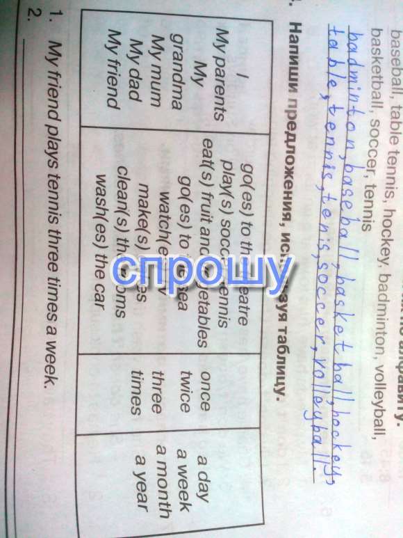 Помогите пж, напишите 5 предложений с помощью таблицы