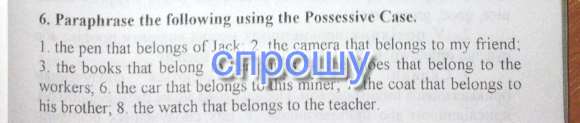1) Jacks pen, 2) friends camera, 3) pupils books, 4)workers shoes, 5) miners car, 6) his brothers coat, 7) teachers watch