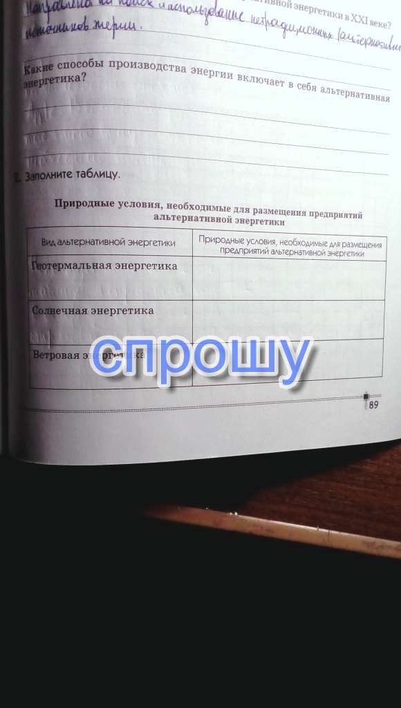 Заполнителя таблицу + напишите пожалуйста какие регионы располагают необходимыми условиями для развития:геотермальной энергетики -.........;солнечной энергетики-......;ветровой энергетики-........