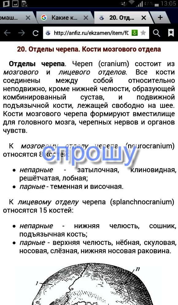 Какие кости образуют мозговой отдел черепа? СРОЧНО