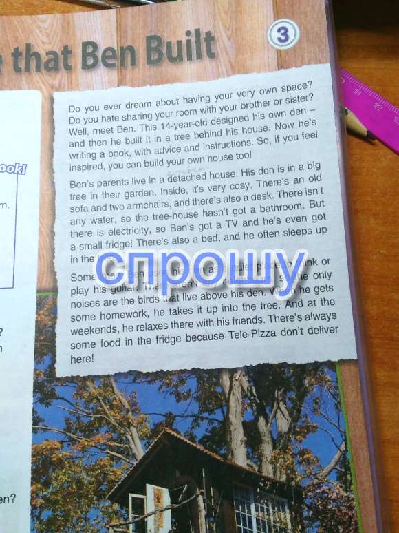 Ты когда нибудь мечтал о своем собственном пространстве (месте) Ты ненавидишь делиться своей комнатой с братом или сестрой Что ж, встречайте Бена! Этот четырнадцатилетний спроектировал и построил свое собственное прибежище на дереве за своим домом. Сейчас он пишет книгу, с советами и инструкциями. Так что, если ты вдохновлен такой идеей, ты можешь построить свой собственный дом тоже.