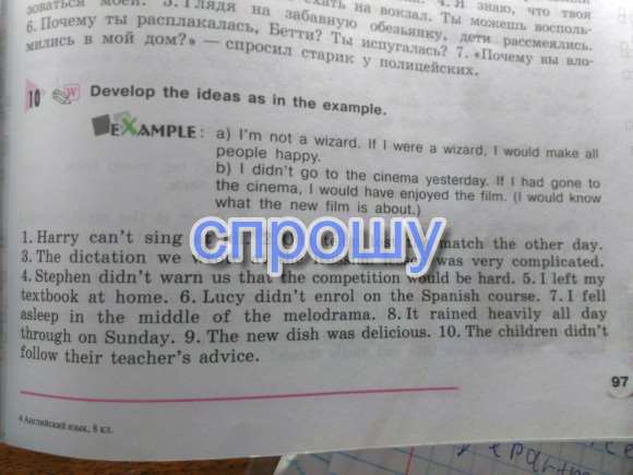 1) If he could, he would take part in the competition tomorrow.2) If our team had trained harder, we would have won.3) If it had been easier, I would have written it better.4) If he had warned us, we would have prepared better.5) If I had remembered to take it, I wouldnt have had to borrow Mikes one.6) If he enrolled, she would have no time for her music classes this semester.7) If I hadnt fallen asleep, I would have understood the ending.8) If it hadnt rained all day through on Sunday, I would have gone camping with my friends.9) If I could cook, I would make it every day.10) If they followed their teachers advice, they would have written the composition better.