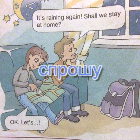 Look at the pictures.Complete the conversations.it's a wonderful day,isn't it?What shall we do? It's raining again!Shall we stay at home?