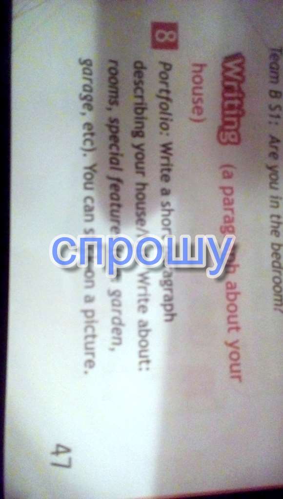 I have several rooms.They are:kitchen,living room,my room and my parents room (если есть комната брата или сестра напиши my sisters room или my brothers room.We also have a garden.There are swimming pool,barbecues and different plants.In my room there are a bed,a computer,a beautiful table and a big cabinet
