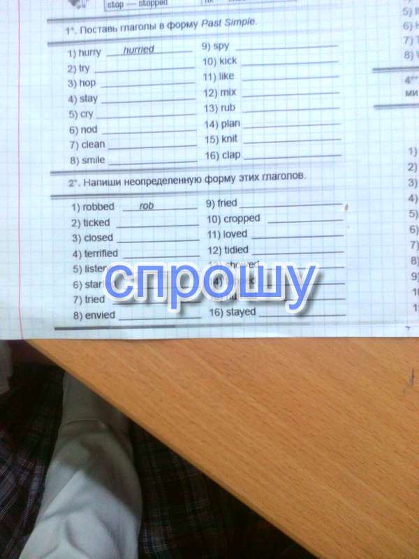 2)tried3) hopped 4)stayed5) cried 6) nodded 7) cleaned 8) smiled 9) spied 10) locked 11)liked 12) mixed rubbed 14) planned15)knitted 16) clapped