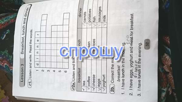Там надо послушать текс и ответить, что на завтрак,на обед и ужин