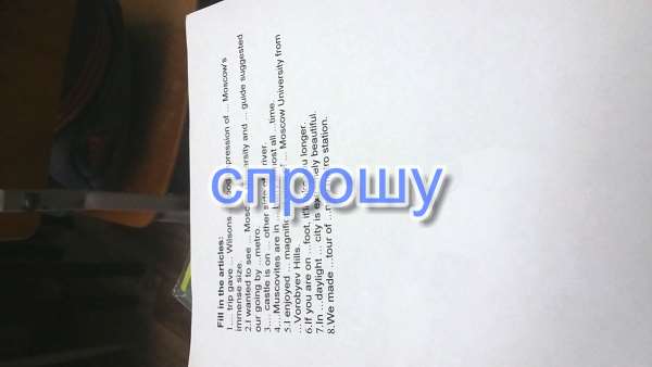Fill in the articles: 1.... trip gave Wilsons good impression Moscow's immense size. of 2.I wanted to see Moscow University and guide suggested our going by metro 3.... Castle is on other side of...river. 4....Muscovites are in hurry almost all..time 5.I enjoyed magnificent view of Moscow University from Vorobyev Hills 6. If you are on...foot, it'll take you longer. 7.In daylight city is extremely beautiful 8. We made tour of...new metro station