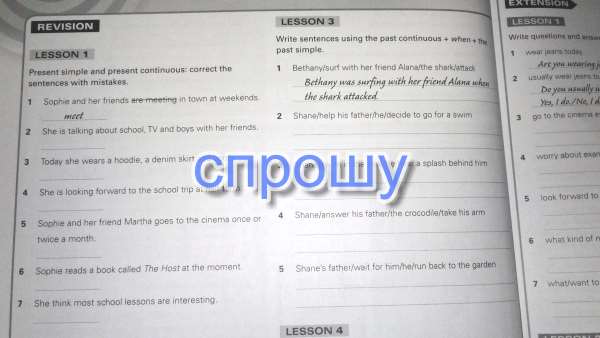 Lesson 1 2. is talking - talks 3. wears - is wearing 4. is looking- looks 5. goes - go 6. reads - is reading 7. think - thinks
